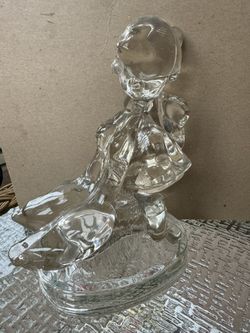 Vintage LE Smith Girl With Geese Figurine Clear Glass 7.5" x 5.25"$7Lakemoor, IL