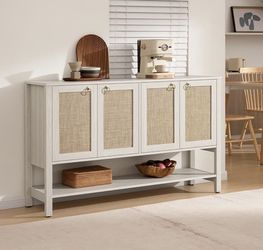 Rattan Sideboard Buffet Cabinet with Open Storage - Large Storage Cabinet with 4-Doors and Adjustable Shelves, Boho Credenza Coffee Bar Cabinets Buffe$115Arcadia, CA
