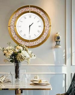 Crushed Diamond Wall Clock Round Decorative Mirrored Clock 32 inch Brown$110Arcadia, CA