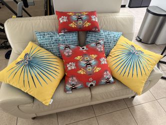Elaine Smith Tropical Bee Red pillows, featuring fade, water, and stain-resistant Sunbrella fabric, Set For 5 Pillows $200Boca Raton, FL