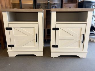 Farmhouse Nightstand Set of 2 , Rustic Beside Table with Barn Door and Open Shelf for Living Room Bedroom Office , White/Oak$90El Monte, CA