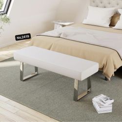 Bedroom Bench Bed end upholstered Bench Indoor Corner Small Bench, with Metal Legs, for entryway Dining Room Kitchen and Living Room, White$45El Monte, CA