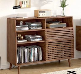 Large Record Player Stand, Mid-Century Turntable Stand with Doors and Charging Station Record Player Table Holds Up to 450 Albums Vinyl Storage Displa$85El Monte, CA