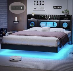 Queen Floating Bed Frame with Storage Headboard, Platform Bed with Storage & LED Lights,Metal Floating Queen Bed Frame, PU Black$135El Monte, CA