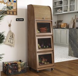 4 Tier Large Potato Storage Bin, Tall Wood Potato and Onion Storage Bin with Wheel, Movable Fruit and Vegetable Basket, Food Small Kitchen Pantry Cabi$75El Monte, CA