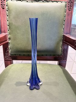 Vintage Bud Vase Cobalt Blue Hand Blown Clear 9.5" Tall Art Glass Twisted$15Laud Lakes, FL