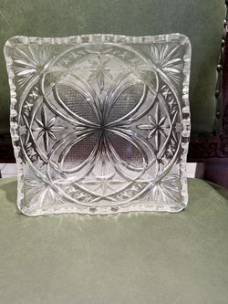Ornate Square Crystal Bowl Stars Loops 5 Point Fan Fine Cut Accents Sawtooth Rim$60Fort Lauderdale, FL