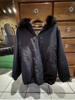 Vintage Black Hooded Coat with Faux Leopard Fur Inside and Faux Fur Trim on Hood$70Laud Lakes, FL