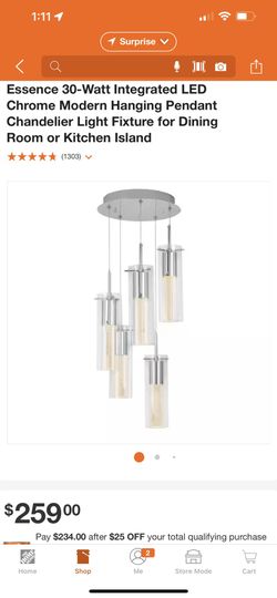 Essence 30-Watt Integrated LED Chrome Modern Hanging Pendant Chandelier Light Fixture for Dining Room or Kitchen Island, Modern pendant perfect for a $75Sun City, AZ