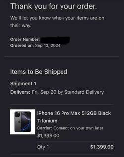 Apple iPhone 16 Pro Max 512GB Unlocked 09/20$1,700Miami, FL