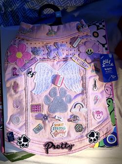 Brand New Med Pink Hand Patched Dog Jean Jacket $70San Antonio, TX