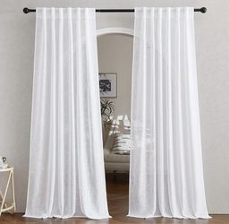 White Linen Sheer Curtains 90" Length, Rod Pocket & Back Tab Window Treatments Semi Sheer Curtain Drapes Privacy with Light Through for Livin$20Rancho Cucamonga, CA