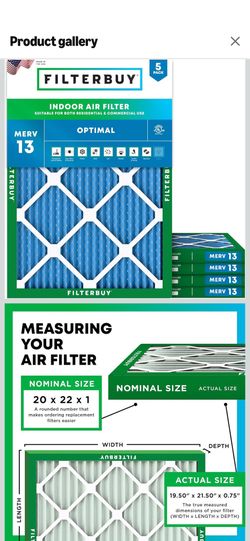 Filterbuy 20x22x1 Air Filter MERV 13 Optimal Smoke & Allergy Defense (5-Pack), Electrostatic Pleated HVAC AC Furnace Filters Replacement, Made in USA $45San Jose, CA