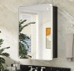 🪞 Modern 16x24” Black Metal Medicine Cabinet with Beveled Mirror – Wall Mounted or Recessed (New)$80Phoenix, AZ