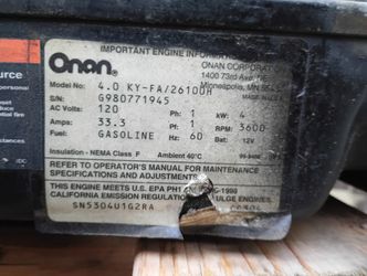 Onan 4500 Watts RV Generator $1,500Sun Valley, NV