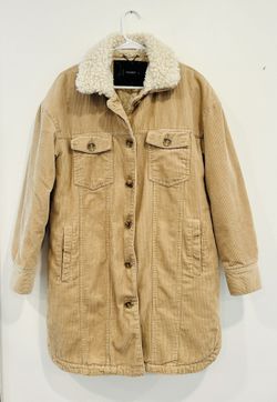 LUCKY BRAND Women’s Tan Corduroy Sherpa Faux Fur Satin Lined Button Down Coat Size Medium$170Warrenton, VA
