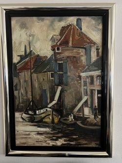 Framed mid-century Impressionist oil painting depicting a harbor scene signed by Artist Nico$900Long Beach, CA