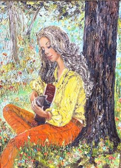 “Time for Love” framed oil painting of a Woman Playing Guitar$800Long Beach, CA