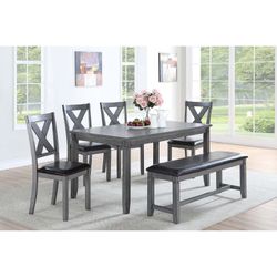 6 Piece Dining Set- Table, 4 Chairs & Bench