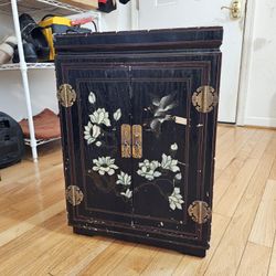 Vintage Asian Oriental Birds/Flowers Chinoserie Black Lacquer 14x12x20" Standing Cabinet$100Rockville, MD