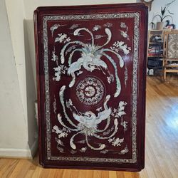 Vintage 1950s Asian Korean "Ginkgo Leaves" Mother of Pearl Inlaid 2 Phoenixes Red Lacquer Wood Table$375Rockville, MD
