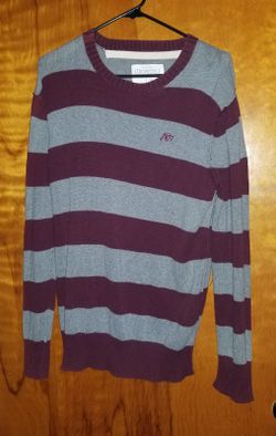 Men's Aeropostale Double Jersey Lined Long-Sleeve Blue & Brown Striped Sweater Large