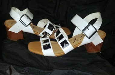 Women's Sugar Mable 2 Block Heel Sandals White Smooth Straps W/ Studs 8
