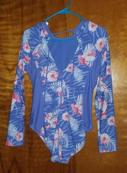 Women's Laguna Blue, White, Pink Long-Sleeve One Piece Swimsuit With Floral Large $14Gaffney, SC