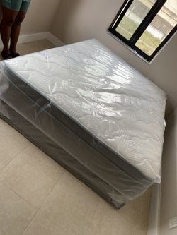 Queen mattress pillow top set with box spring (2pc - new)$199Pompano Beach, FL