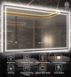 60 x 36 Inch LED Bathroom Mirror with Lights, Large Led Vanity Mirror,Backlit and Front Lighted Bathroom Mirror for Wall,Anti-Fog, 3 Colors Dimmable, $225San Diego, CA