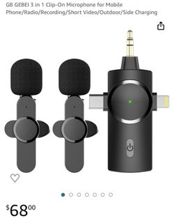 GB GEBEI 3 in 1 Clip-On Microphone for Mobile Phone/Radio/Recording/Short Video/Outdoor/Side Charging$25Bakersfield, CA
