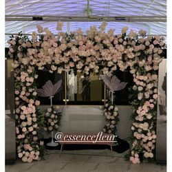 Flower Backdrop And Rattan Chair $200Arrowhed Farm, CA