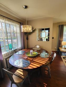 Solid Wood Dining table & 4 stainless steel & wood dining chairs