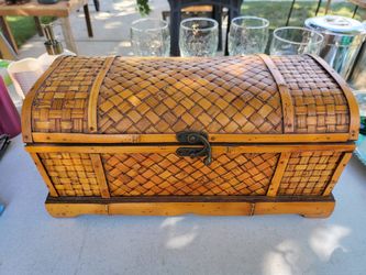 Vintage Bamboo Woven Wicker Carrying Case Box with Metal Latch/Brass Edges/Woven Side Handles Ratan Brown Woven$50Southfield, MI