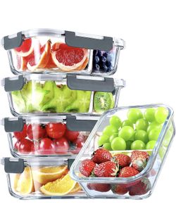 VERONES 5 Pack Glass Meal Prep Containers 2 Compartment Set, 36OZ Airtight Glass Lunch Containers, G$23Houston, TX