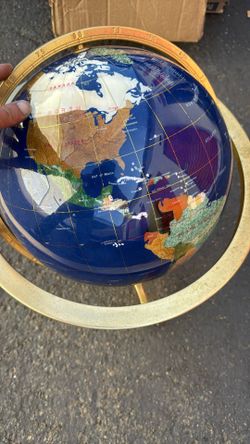 Inlaid Pietra Dura Gemstone Tabletop World Globe on Brass Stand$200San Diego, CA