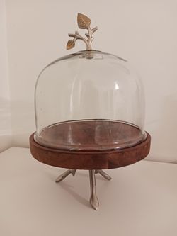 Glass Display Dome / Cake Stand with Wooden Base & Metal Leaf Handle$30New York, NY