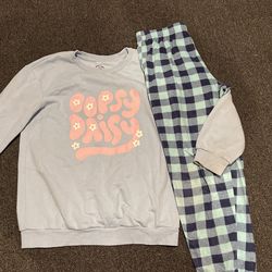 Blue plaid pajamas with blue Oopsie daisy sweatshirt$15Dunstable, MA