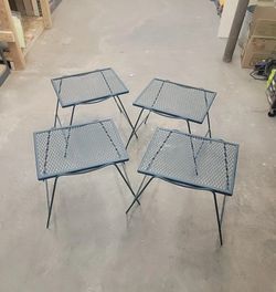 4 Vintage Mid Century Modern Green Wrought Iron Mesh Patio Tables$500Golf, IL