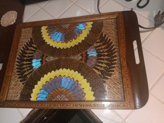 1940'S BRAZILIAN INLAID WOOD TRAY WITH REAL MORPHO BUTTERFLY WiNGS