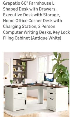 Grepatio 60" Farmhouse L Shaped Desk with Drawers, Executive Desk with Storage, Home Office Corner Desk with Charging Station, 2 Person Computer Writi$295Bakersfield, CA