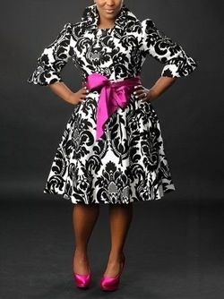 Black & White Damask Print Midi Dress With Hot Pink Bow$45Lacey, WA