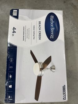 HARBOR BREEZE Beach Creek 44-in Brushed Nickel with Nutmeg/Java Blades Integrated LED Downrod or Flush Mount Ceiling Fan With Light 3 -Blade$99Modesto, CA