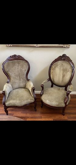 Antique walnut carved Victorian parlor chairs are in great condition for their age $279Mission Viejo, CA