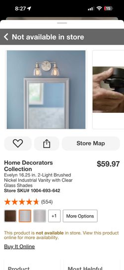 Home Decorators Collection Evelyn 16.25 in. 2-Light Brushed Nickel Industrial Vanity with Clear Glass Shades$30Phoenix, AZ
