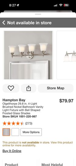 Hampton Bay Ashhurst 32.75 in. 4-Light Brushed Nickel Bathroom Vanity Light with Frosted Glass Shades$30Phoenix, AZ