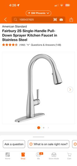 Fairbury 2S Single-Handle PullDown Sprayer Kitchen Faucet in Stainless Steel$50Phoenix, AZ