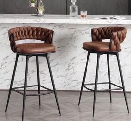 Modern Bar Stools Set of 2, 30" Bar Height Barstools, 180° Swivel Suede Fabric Stool Chairs with Woven Back and Footrest for Kitchen Island, Cafe, Pub$100El Monte, CA