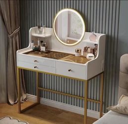 Makeup Vanity Desk with Mirror and Lights, Glass Top Vanity Desk with 3 Drawers & 2 Storage Shelves, Bedroom Dressing Table with Power Outlet, 3 Light$120El Monte, CA