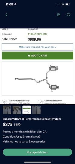 Subaru WRX/STI Performance Exhaust system$375Riverside, CA